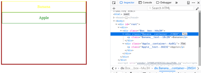 Notice the class name? This is how CSS Modules achieve the local scoping. The imported class will be added on the correct Components and in the process their names will be changed and a unique hash added.